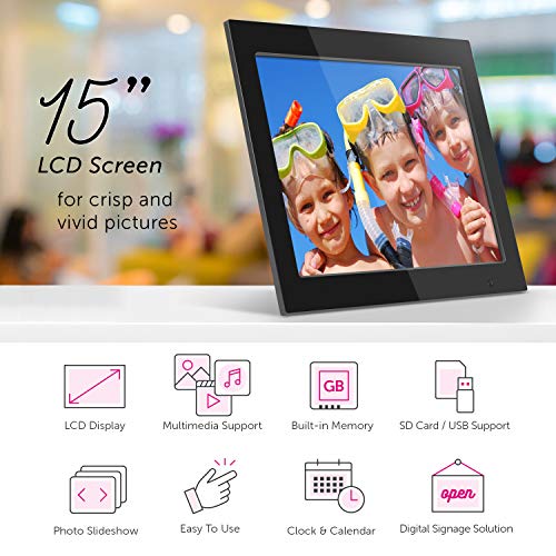 Aluratek 8 Inch LCD Digital Photo Frame with Auto Slideshow Using USB SD/SDHC (ADPF08SF) - Black Sale