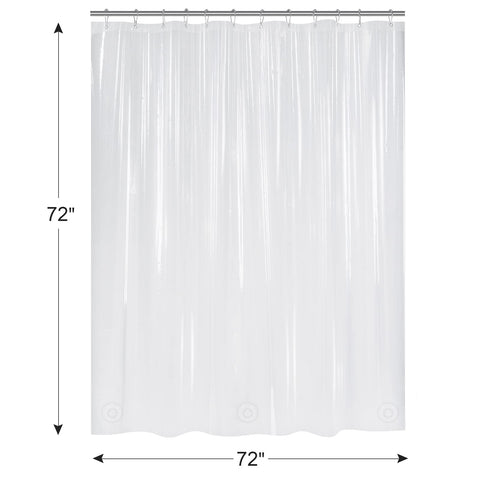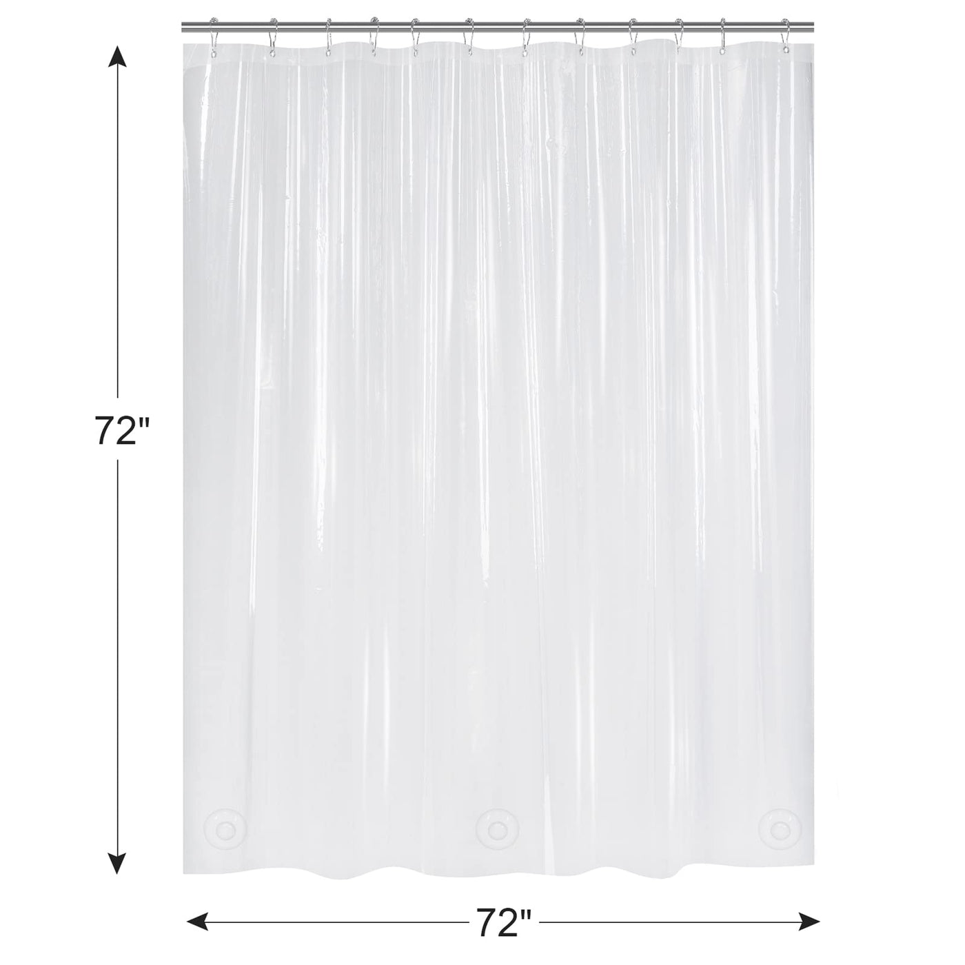 - Multi options - Features 14 classic solid colors is sure to complement any bathroom decor, 72"x72" shower curtain liner fits any standard size shower or tub and works with straight or curved shower rods. The elegant design of this shower liner will never go out of style.