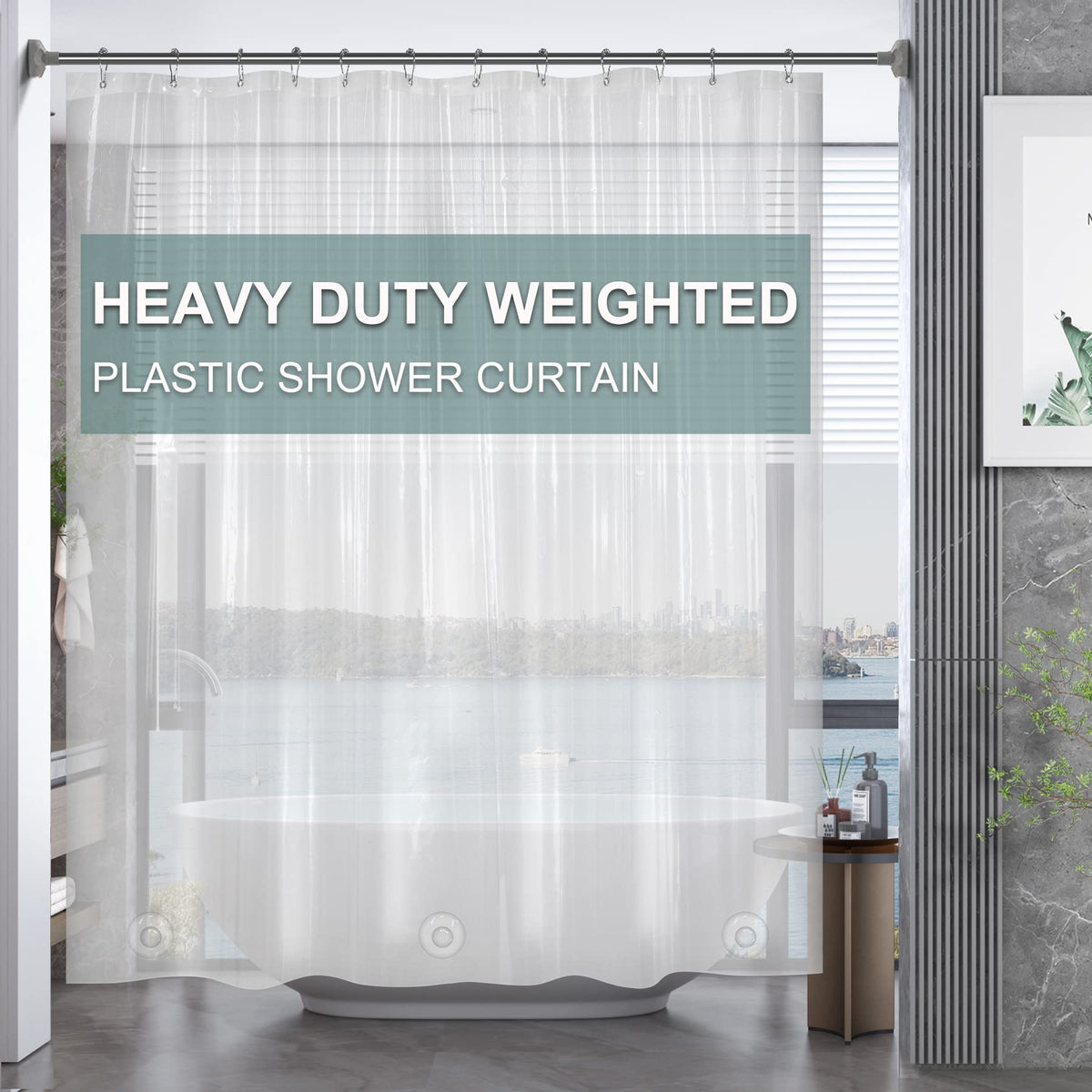 - Reliable heavy weight design - This weighted shower curtain liner is designed to last for a long time and keep from tearing. Each clear shower liner provides 12 rustproof metal grommet holes to accommodate standard or decorative shower curtain hooks. The metal grommet holes and reinforced header promote easier hanging and long-lasting strength.