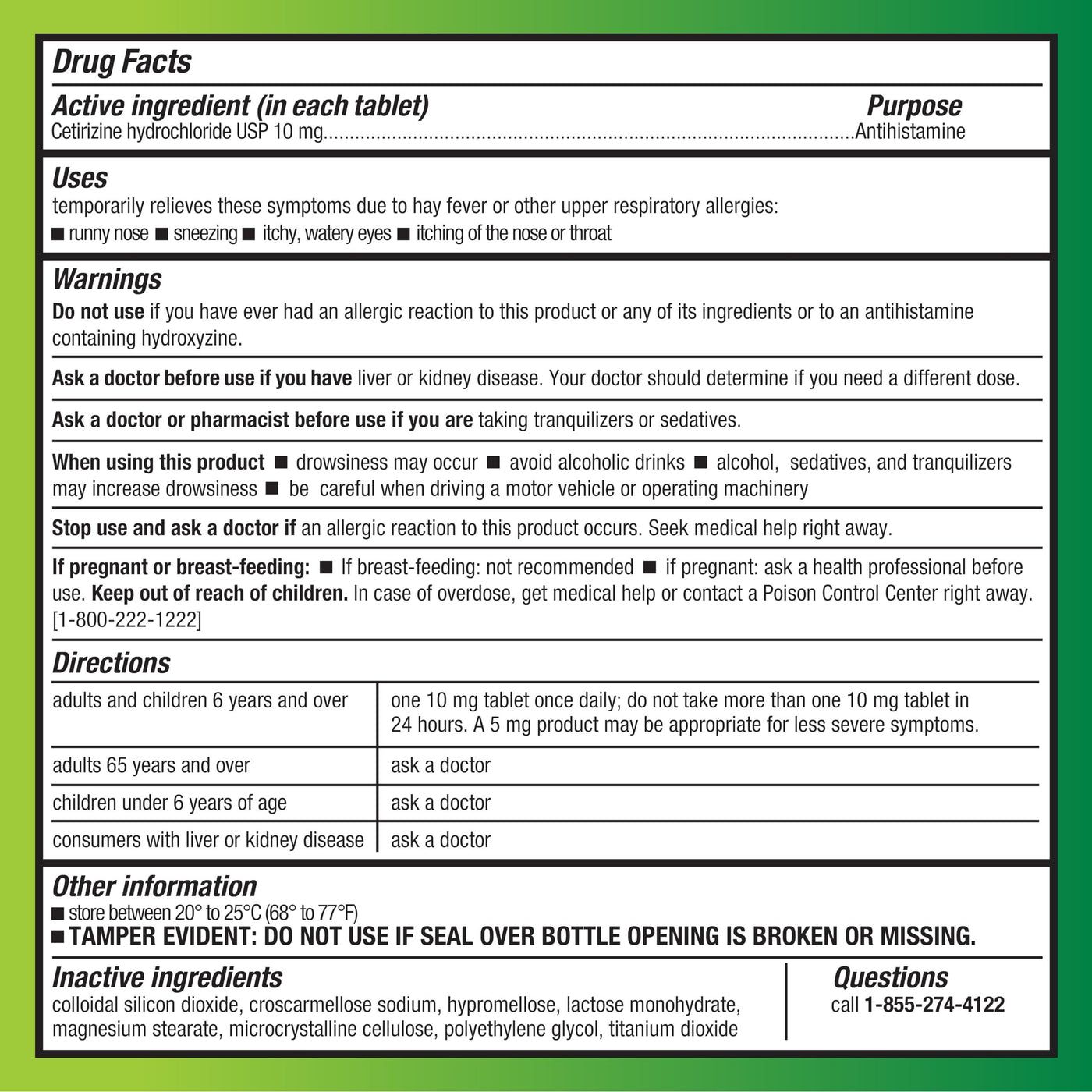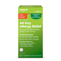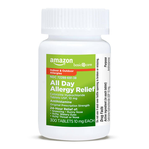 Amazon Basic Care 24 Hour Allergy Relief, Cetirizine Hydrochloride Tablets, 10 mg, 300 Count (Packaging may vary)