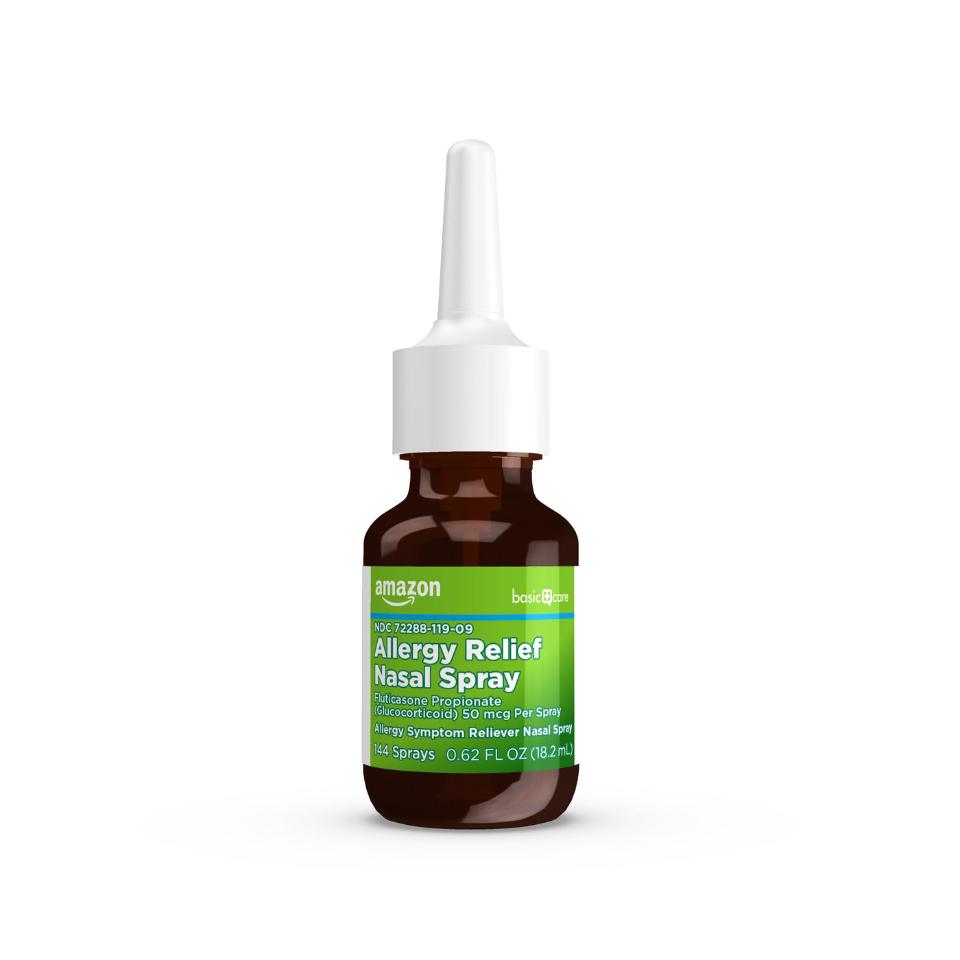 - ACTIVE INGREDIENT: This Amazon Basic Care nasal spray provides relief from allergy symptoms for up to 24 hours; the active ingredient is Fluticasone Propionate (glucocorticoid), 50 mcg, which compares to the active ingredient in Flonase Allergy Relief
