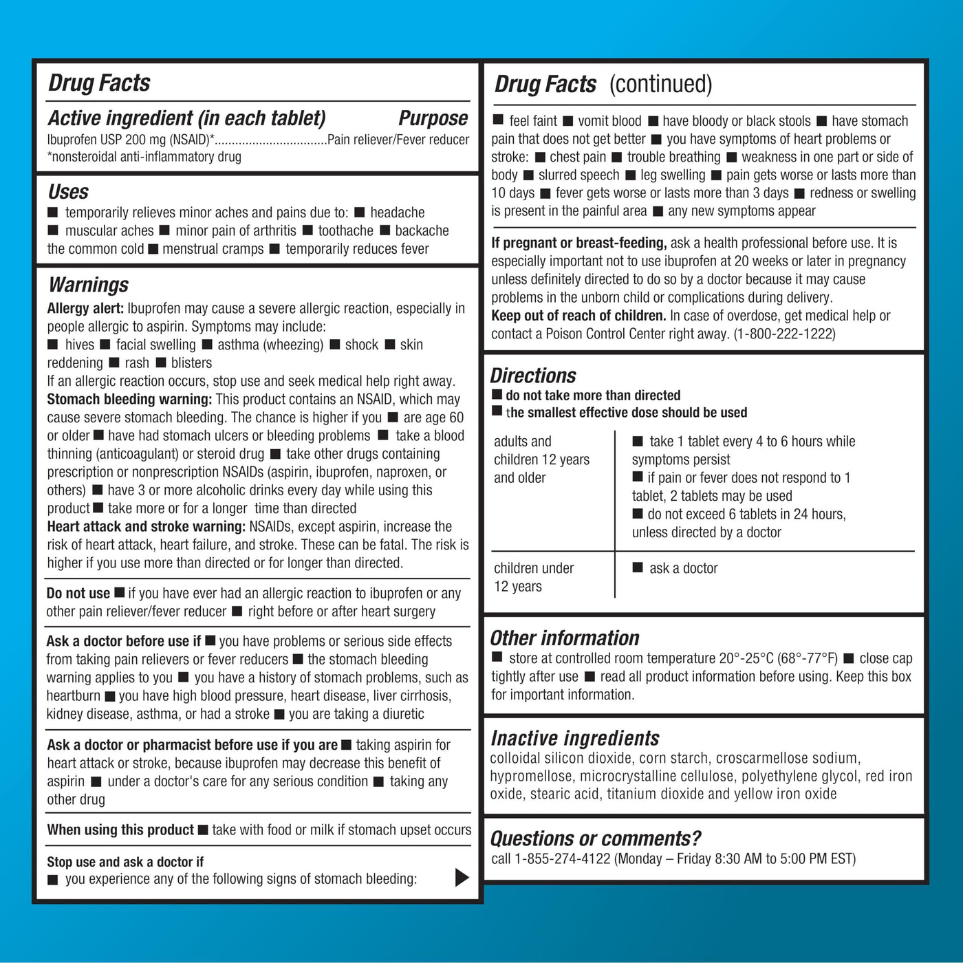 Amazon Basic Care Ibuprofen Tablets 200 mg, Pain Reliever/Fever Reducer, Body Aches, Headache, Arthritis Pain Relief and More, 500 Count (Packaging may vary)