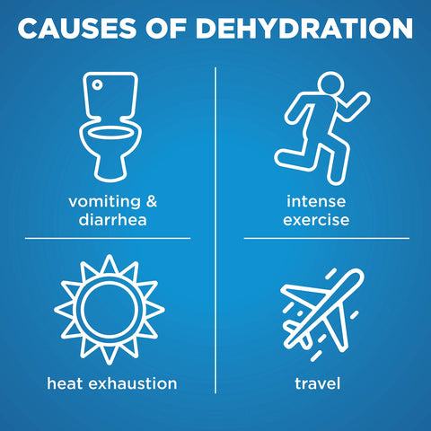 - COMMON CAUSES: Vomiting & diarrhea, intense exercise, heat exhaustion and travel can deplete fluid & electrolyte levels. Amazon Basic Care Electrolyte Solution can help prevent and restore electrolyte balance & for fast, effective rehydration.