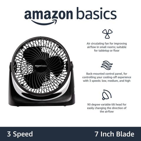 - COMPACT DESIGN: Measuring just 6.3 x 11.1 x 10.9 inches (LxWxH) with three 7-inch blades, this fan occupies minimal space on floors or tables, perfect for various room types such as bedrooms, living rooms, home offices, and kitchens. Enhance airflow and keep cool wherever you are