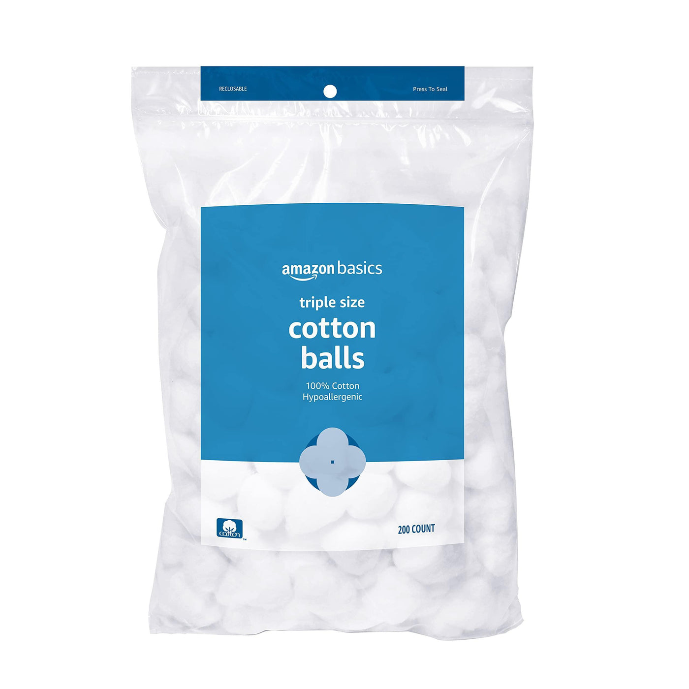 Amazon Basics Cotton Balls, 200ct, 1-Pack (Previously Solimo), 100% Cotton and Hypoallergenic and Ideal for makeup application and removal
