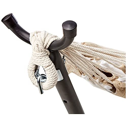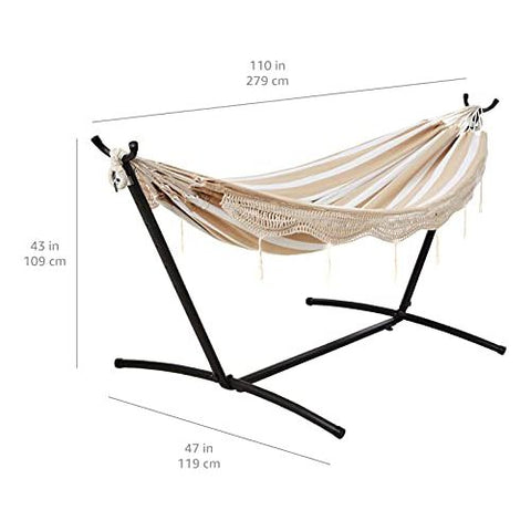 Amazon Basics Double Hammock with 9-Foot Space Saving Steel Stand and Carrying Case, Beige Stripe with Lace