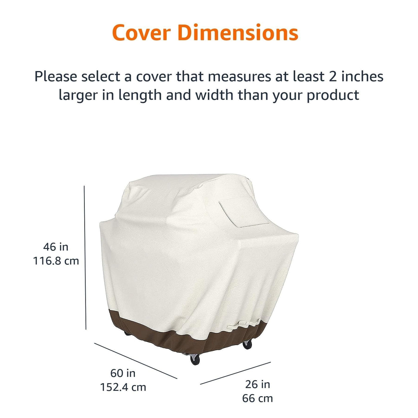 Amazon Basics Gas Grill Barbecue Cover for Outdoor, Waterproof, Anti-UV, Durable Heavy Duty, 60 inch, Medium, Beige