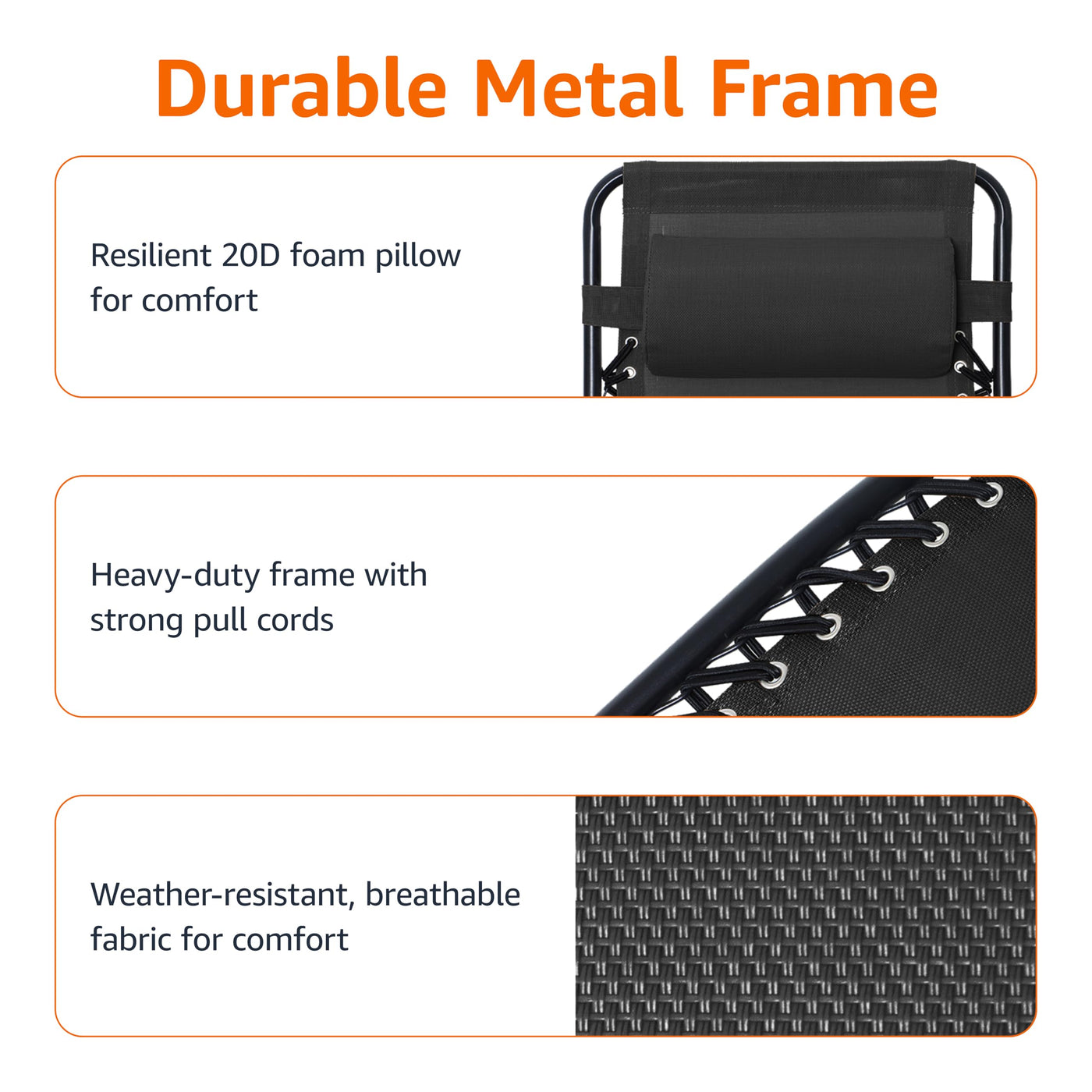 - Adjustable zero-gravity outdoor chair in Black offers a weightless feel for optimal relaxation