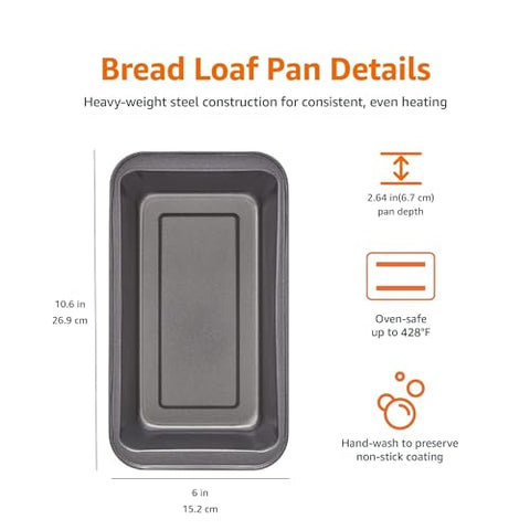 Amazon Basics Nonstick Baking Bread Loaf Pan, 9.5 x 5 Inch, Set of 2