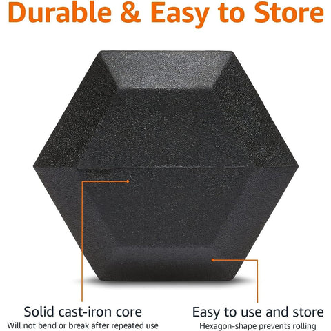 Amazon Basics Rubber Encased Exercise & Fitness Hex Dumbbell, Hand Weight for Strength Training, 15 lbs, Black