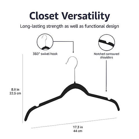 Amazon Basics Velvet Clothing Hangers - 30-Pack, Black