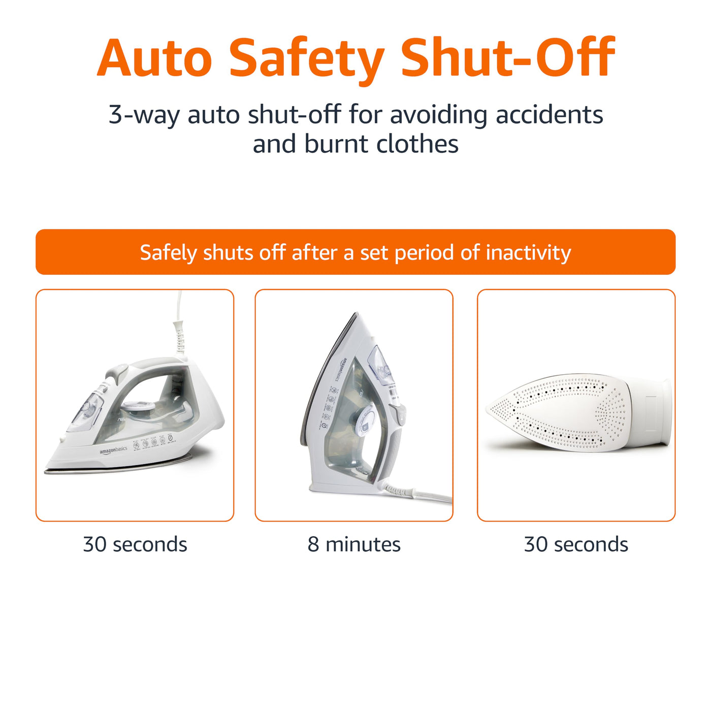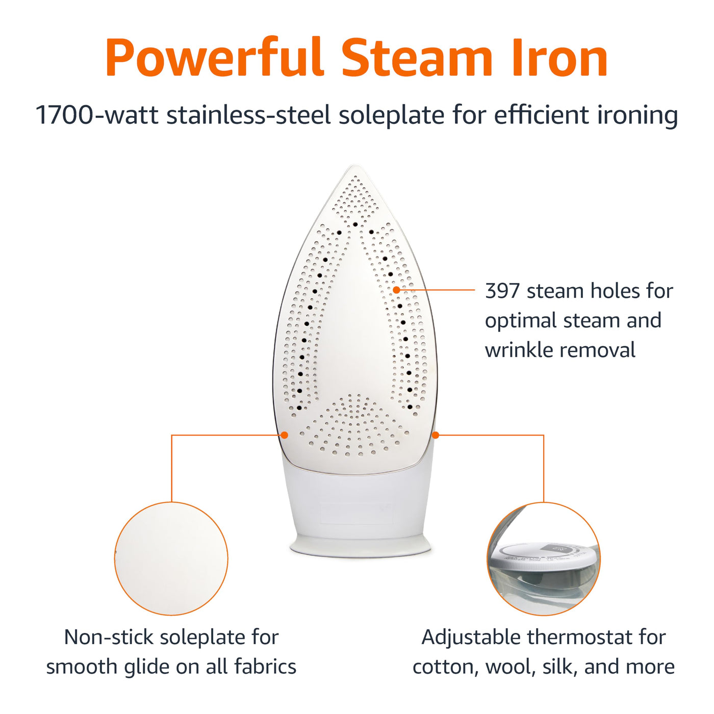 Amazon Basics Steam Iron for Clothes with Safety Auto Shut-Off, Handheld Steamer, Steel Soleplate, 1700-Watt, 1.62ft, Gray