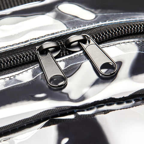 Amazon Basics Transparent School Backpack, With Water-Resistant PVC Plastic Material and Ruggedly Reinforced Shoulder Straps, Clear