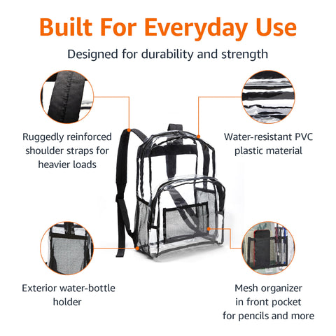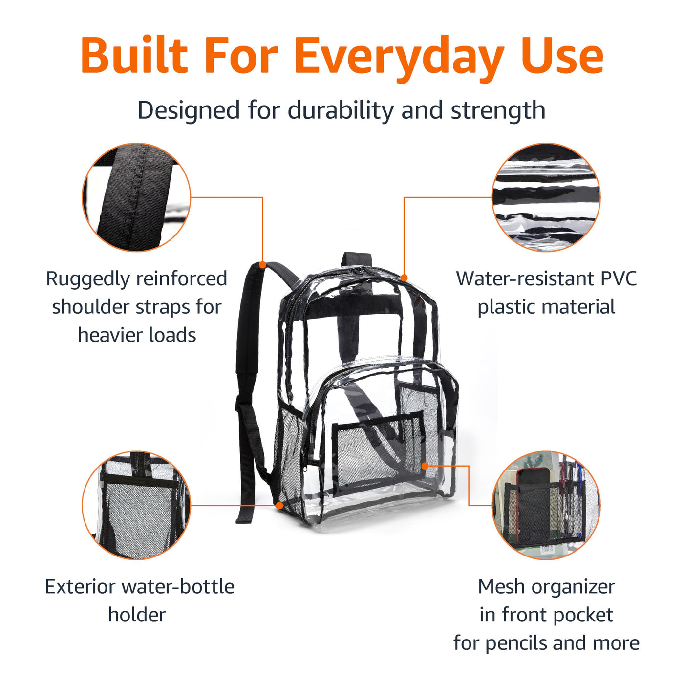 Amazon Basics Transparent School Backpack, With Water-Resistant PVC Plastic Material and Ruggedly Reinforced Shoulder Straps, Clear Sale