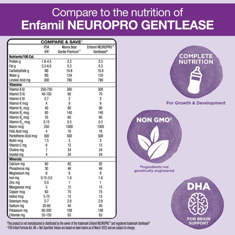 - COMPLETE NUTRITION: This infant formula provides complete nutrition for baby's first year; expert recommended DHA for brain support and immune supporting HMOs commonly found in breast milk; compare to the nutrition of Enfamil Neuropro Gentlease