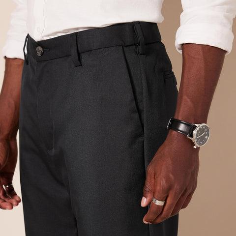 Amazon Essentials Men's Classic-Fit Expandable-Waist Flat-Front Dress Pant, Black, 38W x 32L Sale