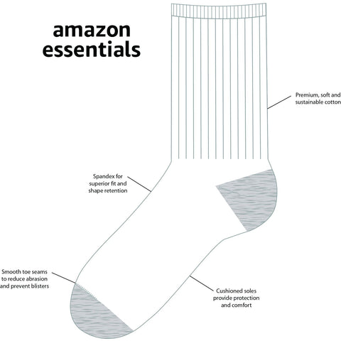 - MATERIAL: Amazon Essentials socks are made from high-quality and durable materials. These socks are a cotton-poly blend with elastane for superior fit and shape retention.