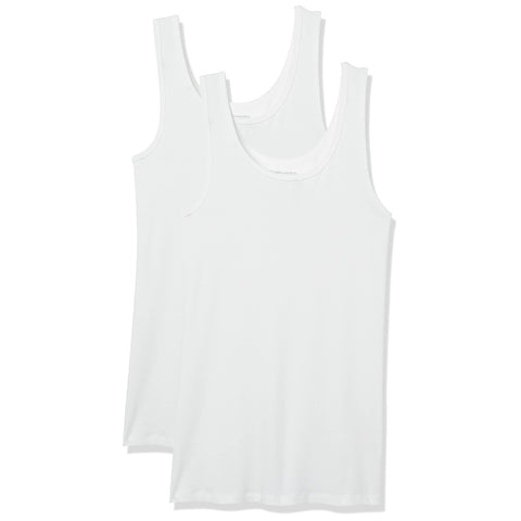 Amazon Essentials Women's Slim-Fit Tank Top, Pack of 2, White, Medium