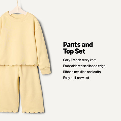 Amazon Essentials x Sofia Grainge Toddler Girls' French Terry Pant and Top Set, Butter Yellow, 3T