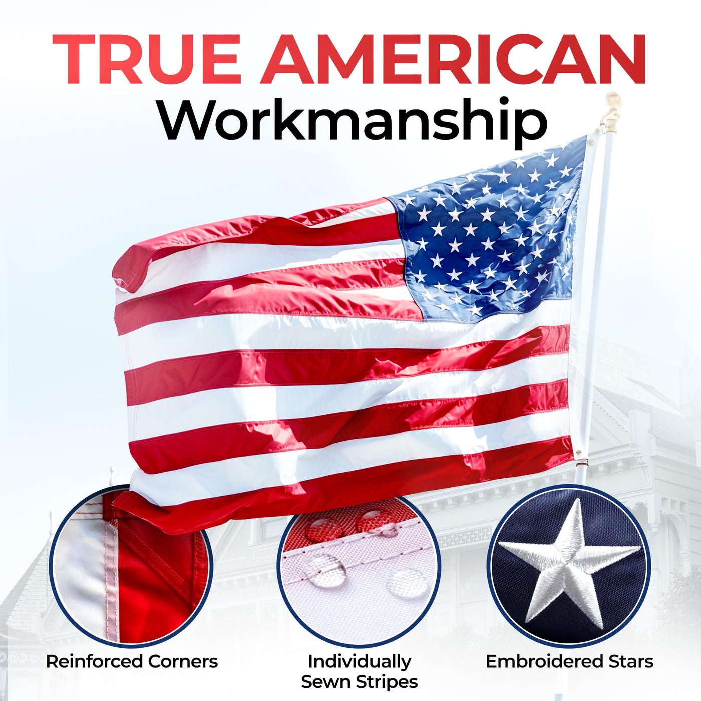 - TRUE WORKMANSHIP - Heavy-duty brass grommets and a quadruple-stitched fly hem ensure it stands tall through any weather, making it the ideal companion for your business or organization.