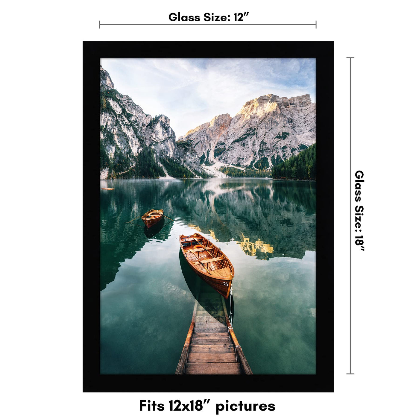 - Our 12x18 frame with classic molding is crafted from durable engineered wood (MDF) and displays 12x18 photos. The shatter-resistant glass adds a pristine finish, making this stylish frame truly stand out.