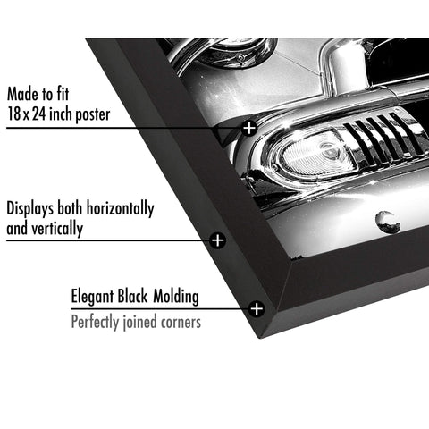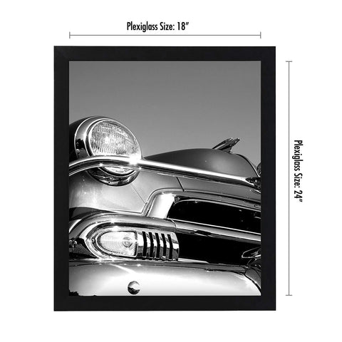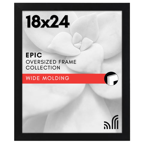 - Our timeless 18x24 frame with wide molding is crafted from durable engineered wood (MDF) and displays 18x24 photos. The polished plexiglass adds a pristine finish, making this statement frame truly stand out.