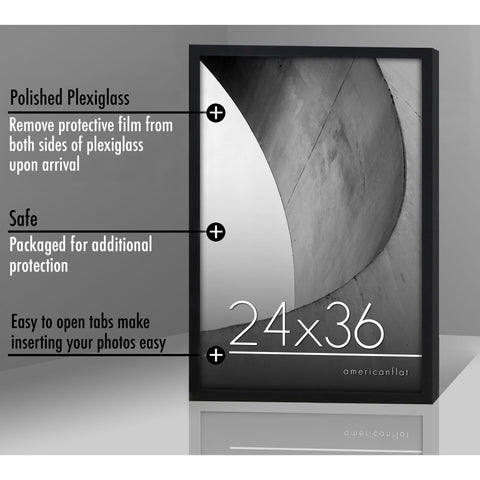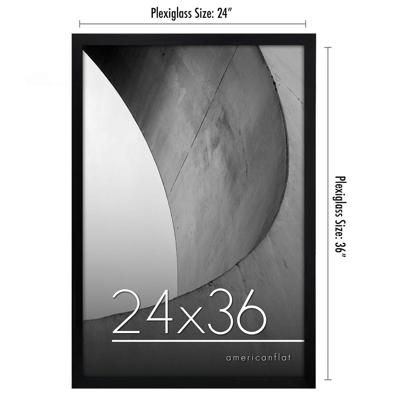 - Our 24x36 frame with slim molding is crafted from durable material (PVC) and displays 24x36 photos. The polished plexiglass adds a pristine finish, making this stylish frame truly stand out.