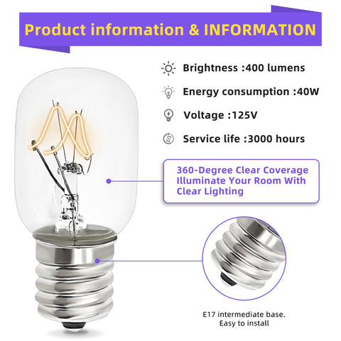 AMI PARTS 8206232A Bulb 40w 125v Microwave Oven Light -Under Hood Microwave Bulb- E17 Fit for Whirlpool Microwave Light Bulb Sale