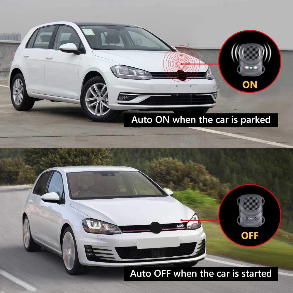 - AUTO ON/OFF - This car mice repellent only works when the car is stopped with no vibration, it'll automatically enter standby mode when the car is started, it'll resume work when the car is parked