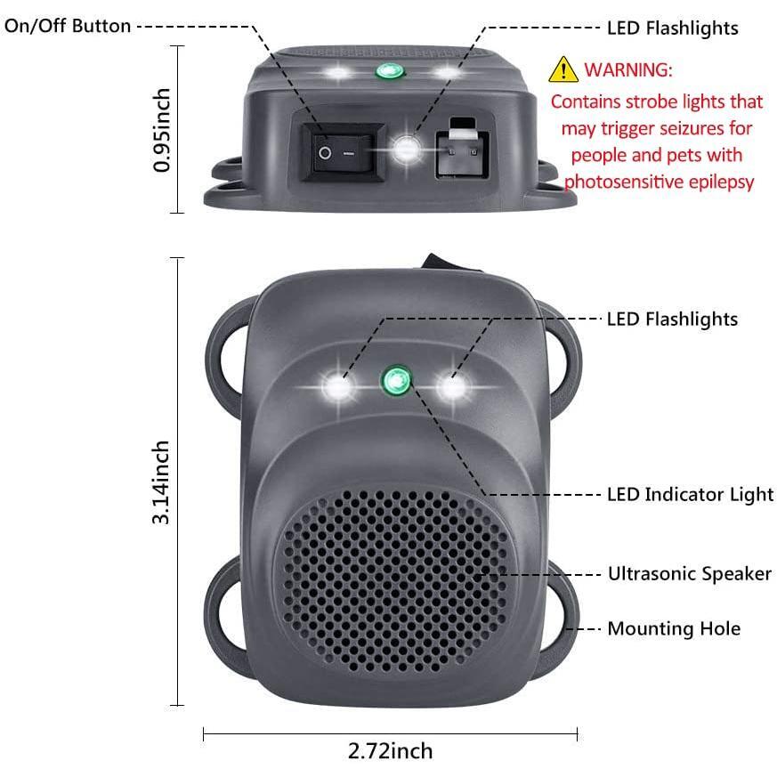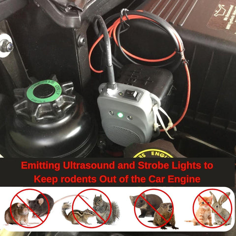 - VEHICLE UNDER HOOD RODENT REPELLER - Deters pesky rodents by emitting a powerful and fluctuating ultrasonic waves and flash lights that are very irritating to them, to stop rodents from chewing wires