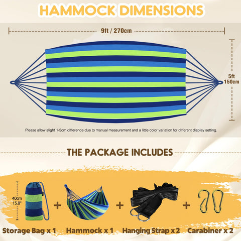 - Comfortable Material: The tightly-woven fabric hammock provides a supportive and comfortable sleeping surface, and the hammocks conforms to your body shape to reduce pressure points and provide maximum relaxation.The colorfast cotton is resistant to wear and tear and is designed to withstand outdoor use.And it has a weight capacity of up to 660 pounds