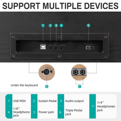 - [Outstanding Sound and System Features]: Equipped with volume adjustment, multi-tone selection, recording control, playback function, split, teaching function, etc. Input for playing MP3, built-in amplifier, support for external speakers or headphones, suitable for different use scenarios