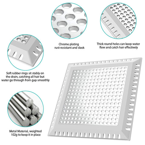 - Durable stainless steel material is weighted enough to keep the shower drain cover in place so as to avoid water flow impact.And excellent material can help you stay away from rust and deformation trouble.