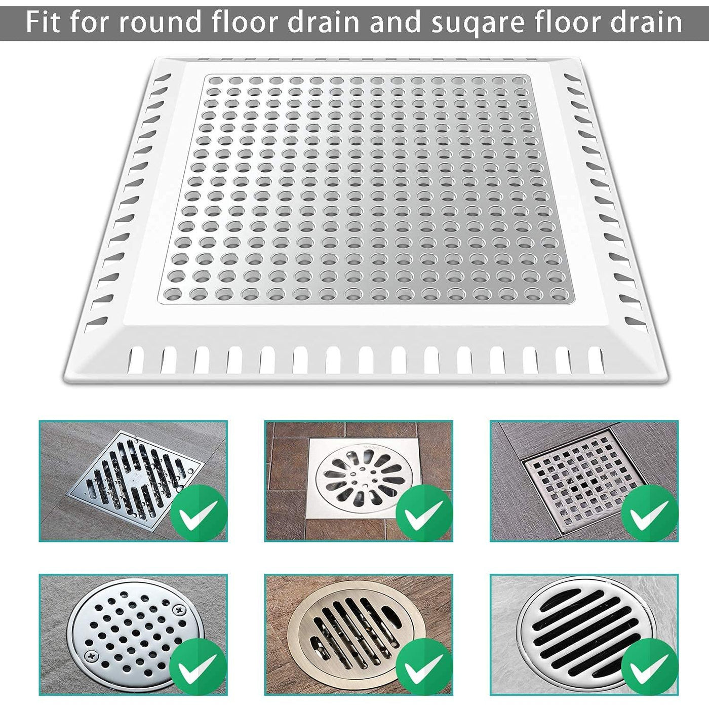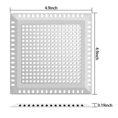 - The shower drain hair catcher is measured 4.9 L x 4.9 W (inches), fit for drain below 4 inch,square shape covers both round and square style shower drains,perfect for shower drain. Attention: pls measure your drain before purchase.