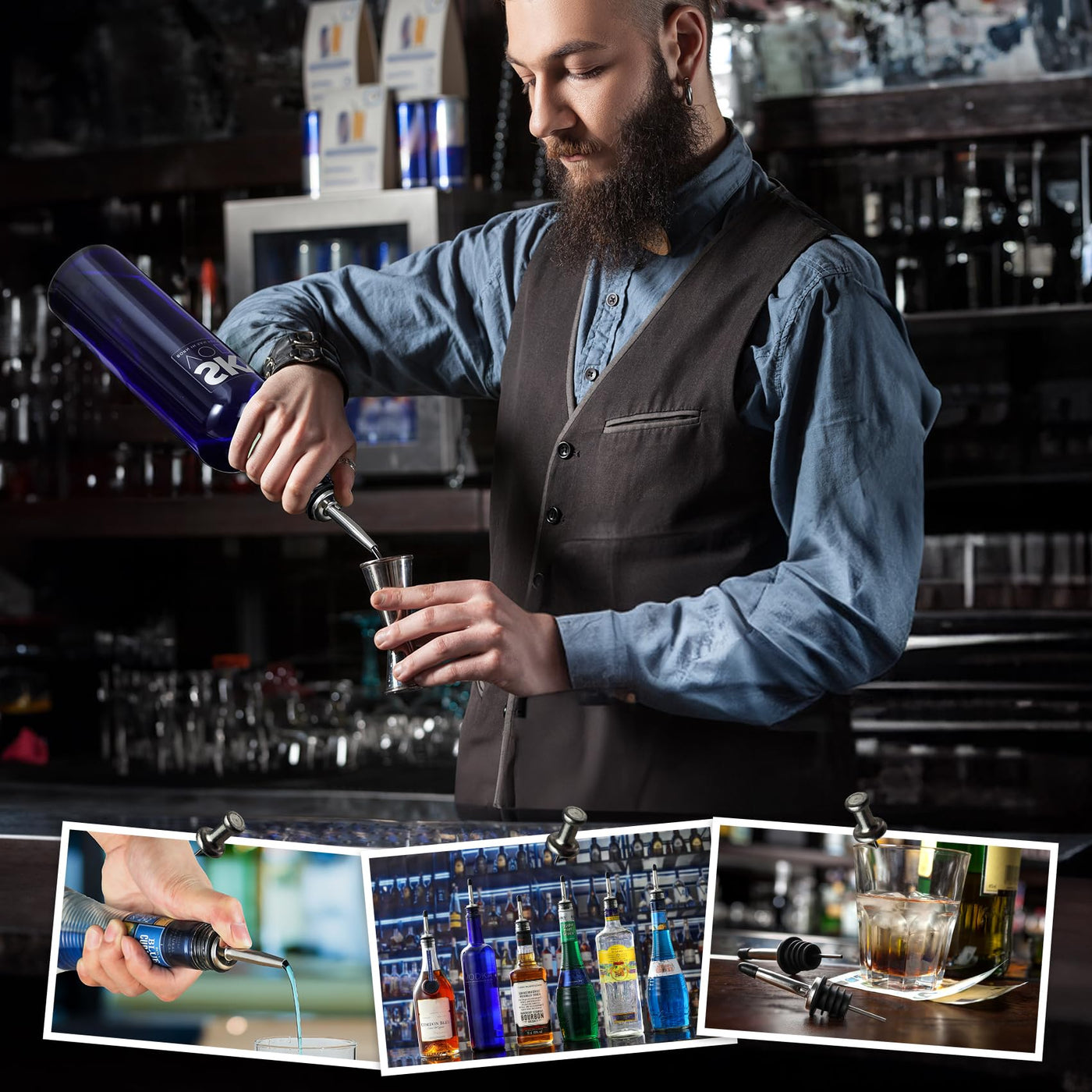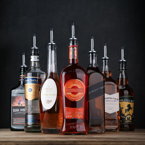 - These liquor spouts with tapered design offer control, accuracy and the most perfectly consistent pour speed every time. When you use one of our liquor pour spouts you will experience less spillage and less mess