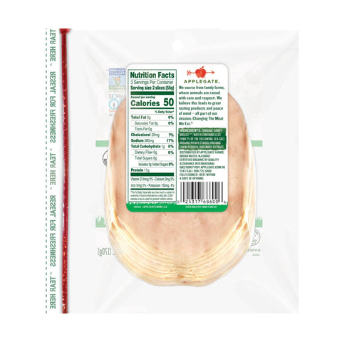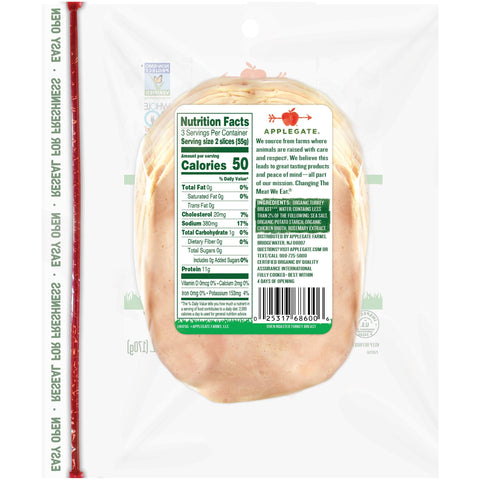 - Applegate, Organic Oven Roasted Turkey Breast, 6oz