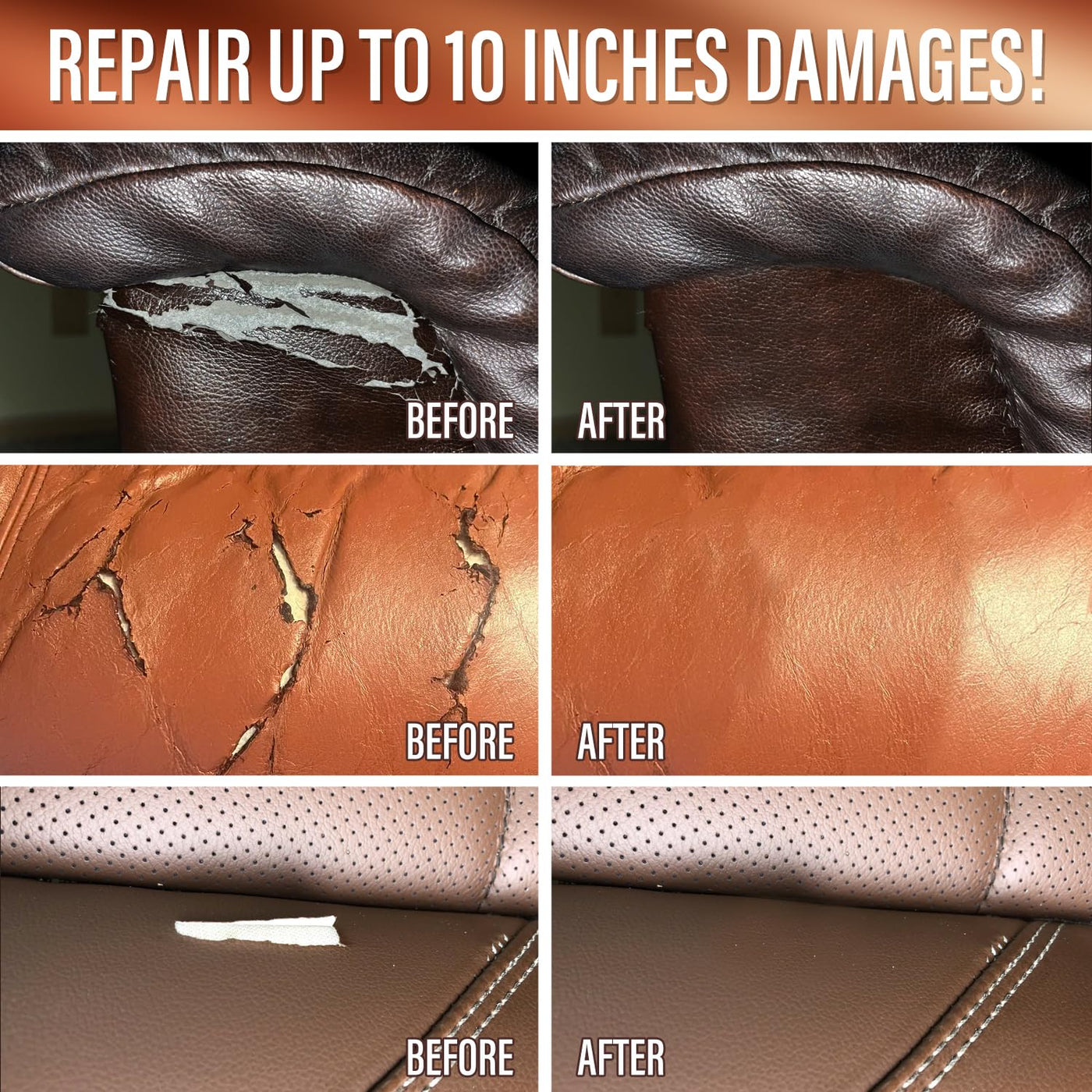 - PROFESSIONAL RESULTS : This repair kit comes with detailed step-by-step directions and made of high quality, super-fast drying liquid repair adhesive compound that will help repair scratch, cut, hole, tear, rip, crack, mark, pet cat or dog damage on your damaged, cracked, scratched, peeling leather. To make your new or old genuine leather, faux, imitation or premium upholstery as good as new