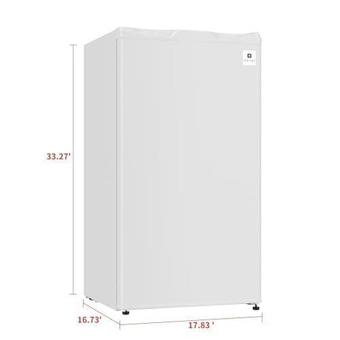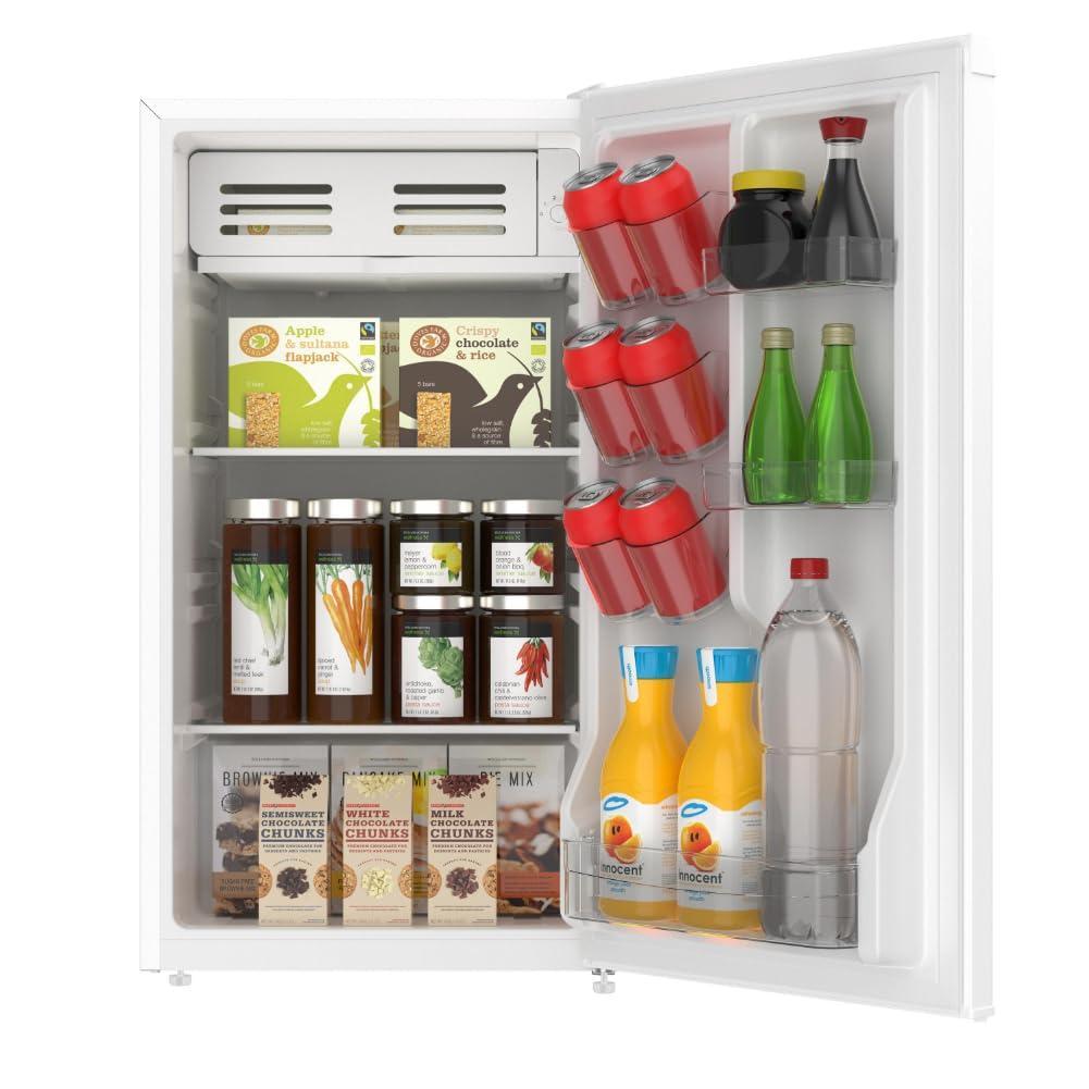 Sleek and beautiful, this 3.2 CU Foot Refrigerator is amazing! This fridge is perfect for a small office, dorm room, kitchen or playroom. The compressor cooling fridge will keep your drinks and food at a perfect temperature. With the built in freezer you can store your dinner, ice cream or other snacks! There is a door bracket to neatly store your drinks. Slide out shelving makes it easy to clean the inside of your fridge. This is a high quality fridge and freezer with a reversible door so you can fit this bar fridge in any spot. With built in temperature control and low energy consumption, this refrigerator is the ideal solution for anyone looking to cool and freeze! Temperature Controls: As this is a compact option, sadly, we do lose out on some of the bells and whistles that come with a large refrigerator. You can manually control the temperature, however, since there are no true separate compartments, you cannot set a temperature for the top side or lower side of this small unit. The “freezer” is considered a “chiller” as this is where the coldness originates from, so with the correct setting for the rest of the unit, the compartment is a “freezer” area.