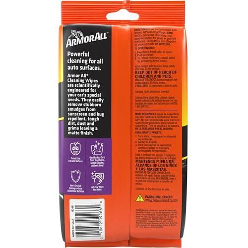 Details: Lift away dirt in a single wipe with Armor All Multi Purpose Car Cleaning Wipes. Great for the whole car, these all-in-one automotive wipes easily remove grime to reveal natural "just detailed" look. These convenient, disposable Armor All wipes are meticulously engineered for your car's special needs. Just wipe the dash, vinyl, fabric, carpet, consoles and more'this formula won't dry out, damage, or fade surfaces. The lint free wipes leave behind an exceptional clean and a matte finish that brings out your car's natural beauty. A Moisture Lock Lid keeps these automotive wipes fresh for a year.