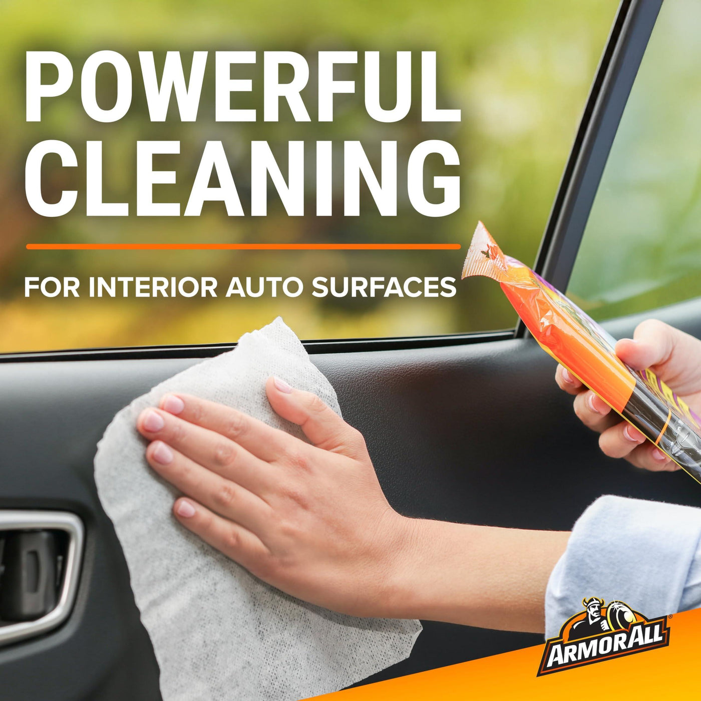 - Lift away dirt in a single wipe with Armor All Multi Purpose Car Cleaning Wipes. Great for the whole car, these all-in-one automotive wipes easily remove grime to reveal natural "just detailed" look. These convenient, disposable Armor All wipes are meticulously engineered for your car's special needs. Just wipe the dash, vinyl, fabric, carpet, consoles and more'this formula won't dry out, damage, or fade surfaces. The lint free wipes leave behind an exceptional clean and a matte finish that brings out your car's natural beauty. A Moisture Lock Lid keeps these automotive wipes fresh for a year.