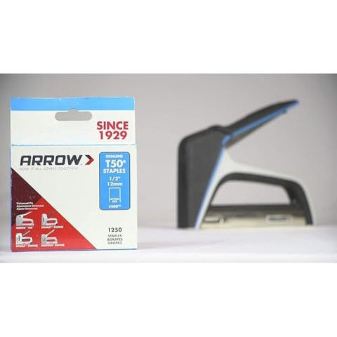 Details: Arrow 508 Heavy Duty T50 1/2-Inch Staples are made to deliver exceptional holding power, these staples are used for all heavy-duty stapling applications – from installing insulation, house wraps, and roofing underlayment to upholstering fine furniture and window treatments. A true workhorse of a fastener, Arrow T50 staples are made to precise specifications on state-of-the-art equipment. Works with T50, T50X, T50HS, 5700, T50RED2, T50PBN, T501, HT50, HT55, HTX50, HT55BL, HT50MG, T50ACD, T50DCD, T50AC, ET501F, ET501C, PT50, T50RED2.