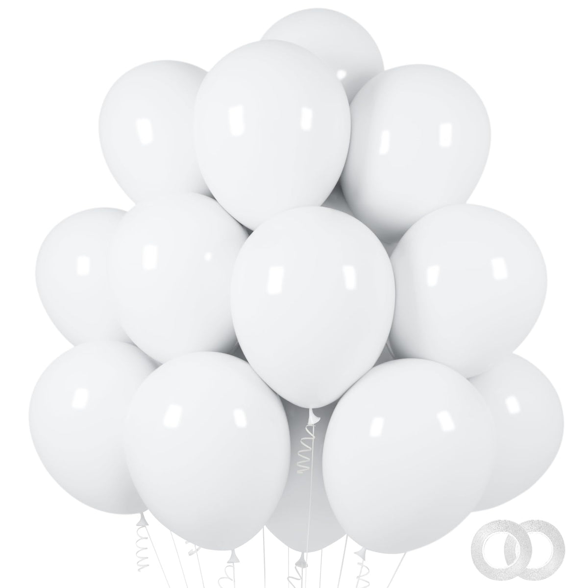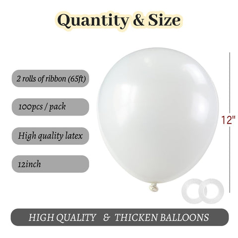 ASIYUHY White Balloons 100 Pack 12 Inch White Latex Party Balloons with 2 Rolls of Ribbon Helium Balloons for Wedding Birthday Party Baby Shower Engagement Anniversary Decorations Sale
