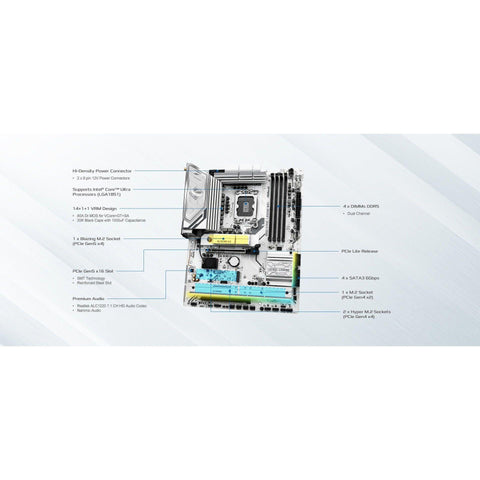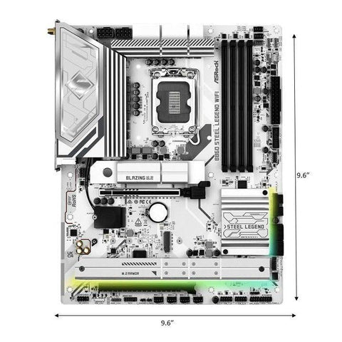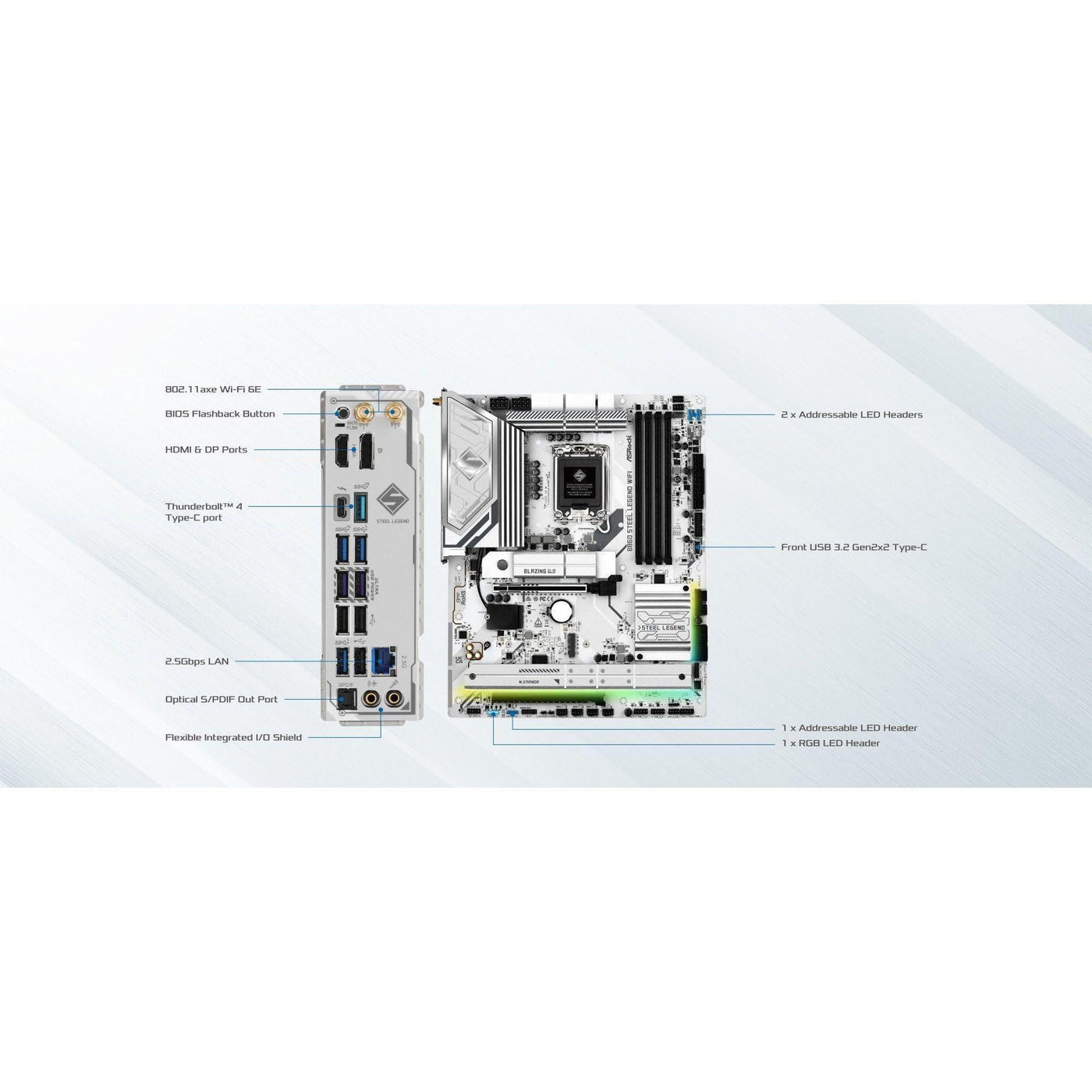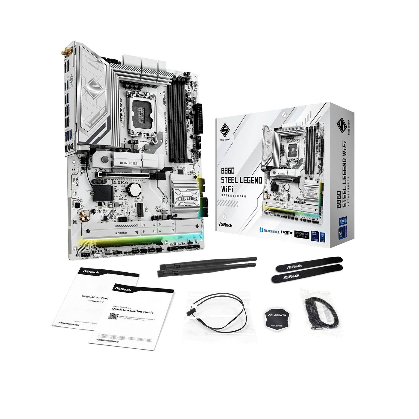 ASRock B860 Steel Legend WiFi 6E LGA1851 Intel Core Ultra (Series 2) DDR5 8666+ (OC) MHz 256GB M.2 ATX Motherboard Thunderbolt SATA3 6.0 Gb/s PCIe 5.0 2.5G LAN HDMI DisplayPort BIOS Flashback