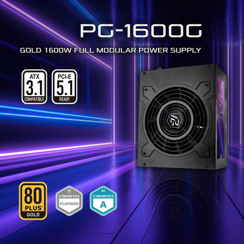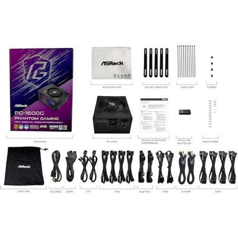 ASRock PG 1600G ATX 3.1 1600W Power Supply PCle5.1 10 Years Warranty Fully Modular Japanese Capacitor Phantom Gaming PG-1600G 80 Plus Gold Cybenetics Platinum 12V-2x6 Cables Sale