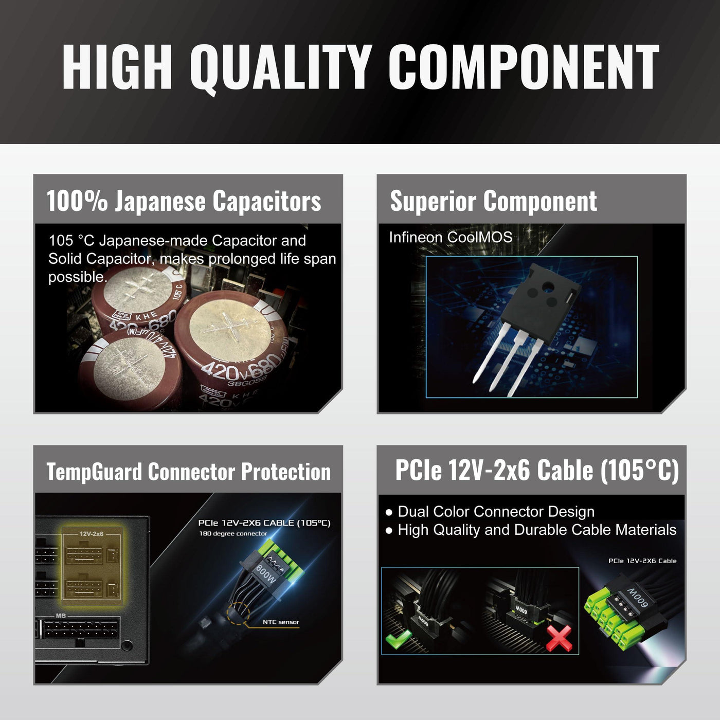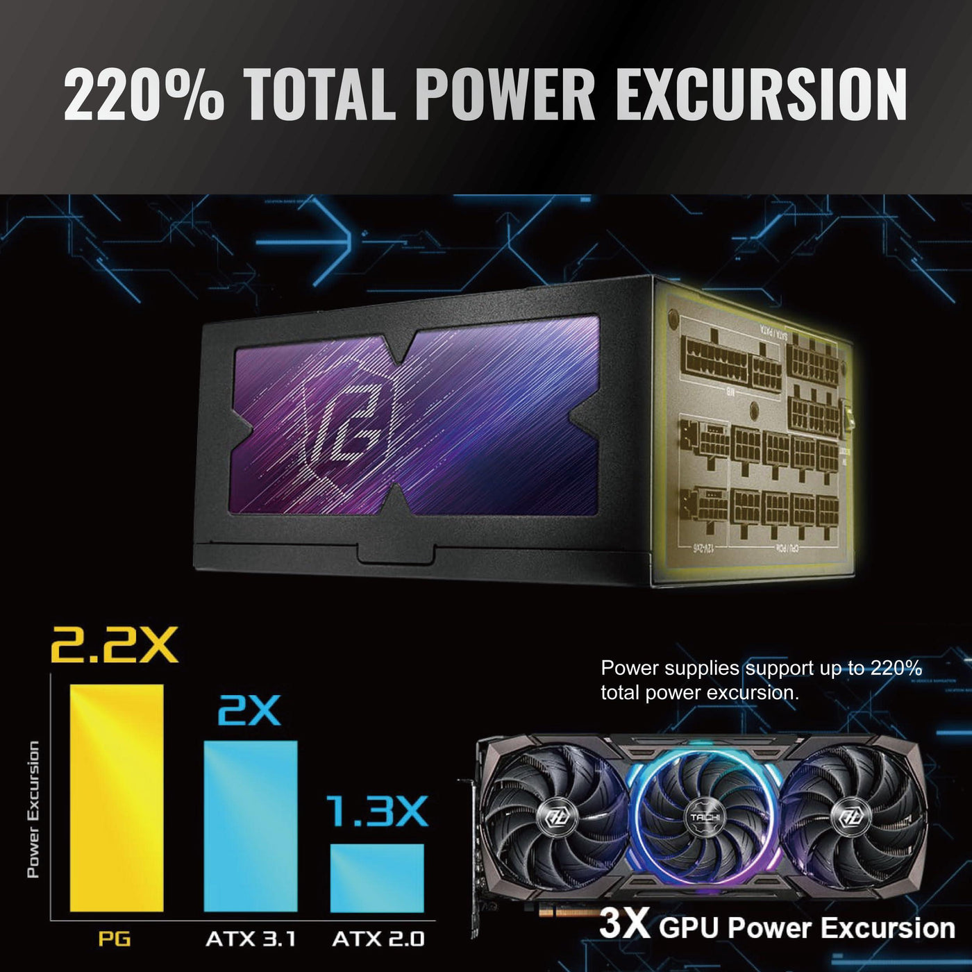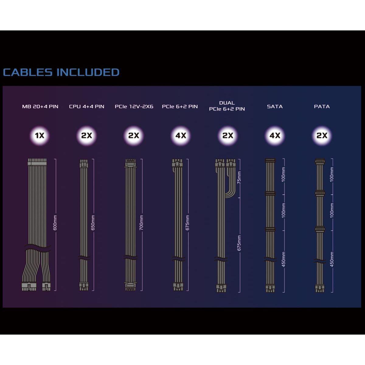 ASRock PG 1600G ATX 3.1 1600W Power Supply PCle5.1 10 Years Warranty Fully Modular Japanese Capacitor Phantom Gaming PG-1600G 80 Plus Gold Cybenetics Platinum 12V-2x6 Cables
