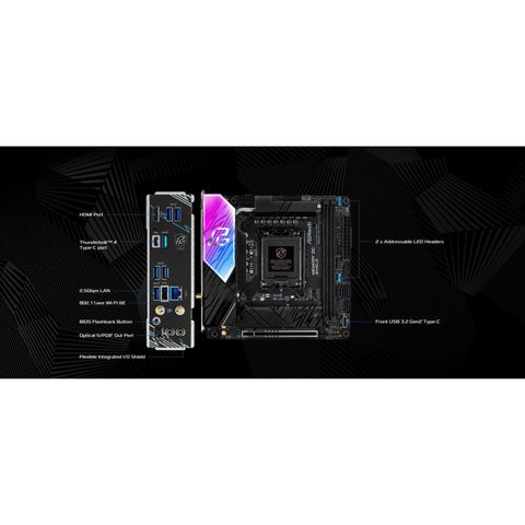 Details: The ASRock B860I Lightning WiFi is a compact Mini-ITX motherboard designed for Intel's LGA1700 socket, supporting 12th/13th/14th Gen Core processors. This space-saving powerhouse features a 6+1+1 power phase design with 50A Dr.MOS for efficient power delivery, making it ideal for small form factor builds. It supports DDR5 memory (up to 7200+ MHz, OC) and includes PCIe 5.0 x16 for next-gen graphics cards, delivering impressive performance in a tiny package. Storage options include one PCIe 4.0 x4 M.2 slot and four SATA III ports, while connectivity features WiFi 6E and 2.5G LAN for ultra-fast networking. The rear I/O offers USB 3.2 Gen2x2 Type-C (20Gbps), DisplayPort 1.4, and HDMI 2.1 for 4K displays. The Realtek ALC897 audio codec ensures clear sound, and the board includes RGB LED headers for customizable lighting effects. Built for durability, the B860I Lightning WiFi features high-density power connectors and 8-layer PCB design for better signal integrity. With BIOS Flashback for easy updates and ASRock's Lightning Series optimizations, this motherboard is perfect for gamers and creators building powerful, compact systems without compromising on features.
