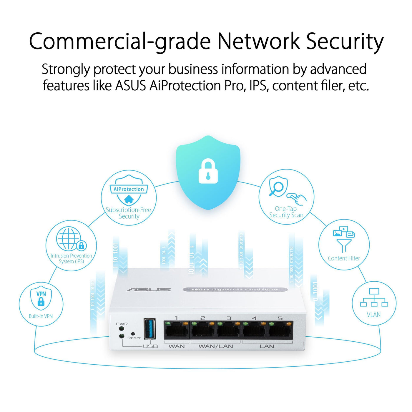 ASUS ExpertWiFi EBG15 Gigabit VPN Wired Router, up to 3 WAN ethernet Ports + 1 USB WAN, IPS Intrusion Prevention, Layer 7 Firewall, Commercial-Grade Network Security, Remote Management with App