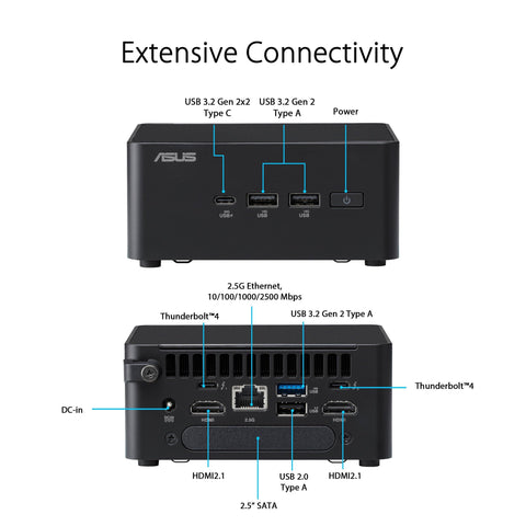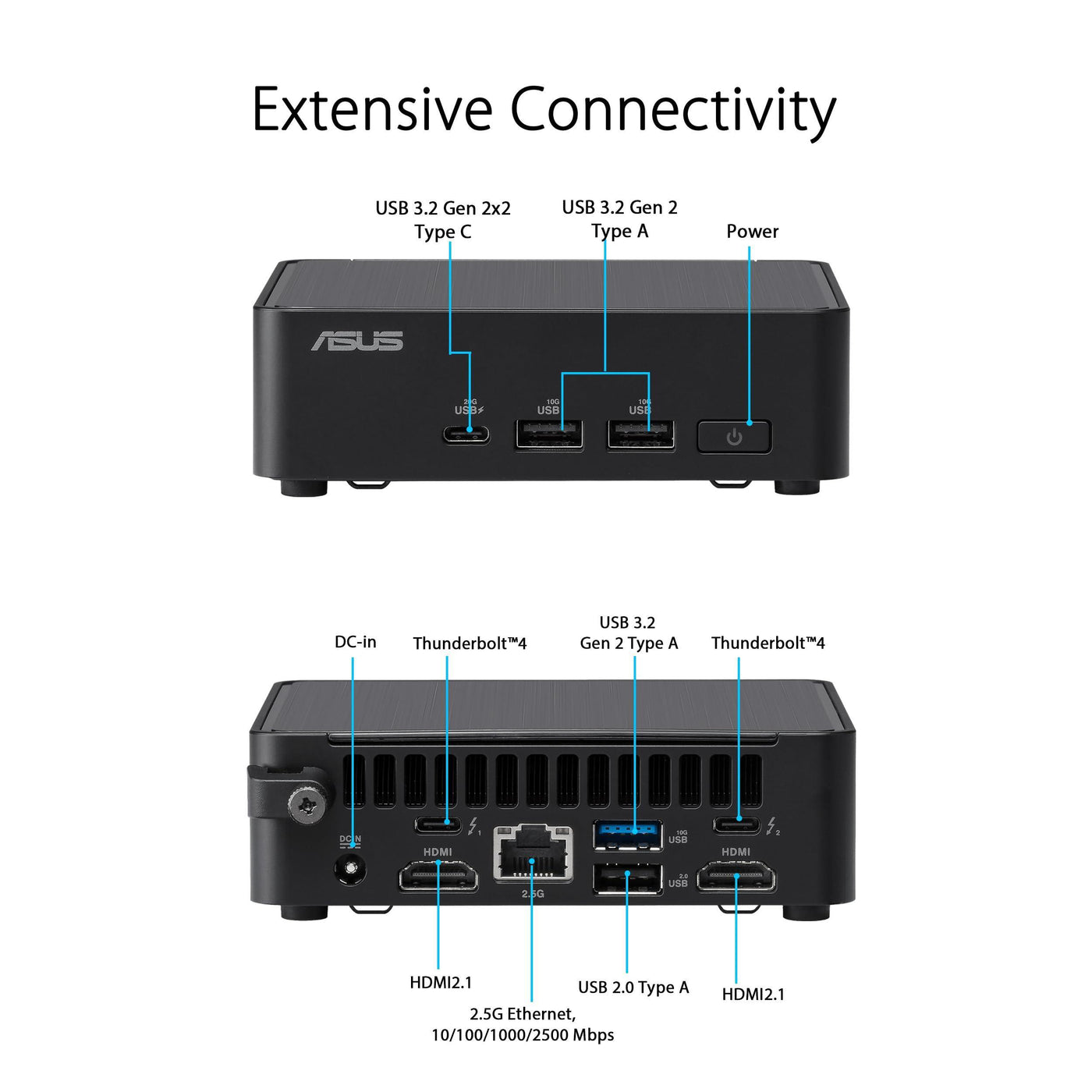 Details: ASUS NUC 14 Pro Tall Barebone with Intel 14th Gen Core Ultra 5 125H (NPU Support), up to 96GB DDR5 RAM, Triple Storage Design, Thunderbolt™ 4, Wi-Fi 6E & Bluetooth 5.3, Toolless Chassis Access, with VESA Mount included