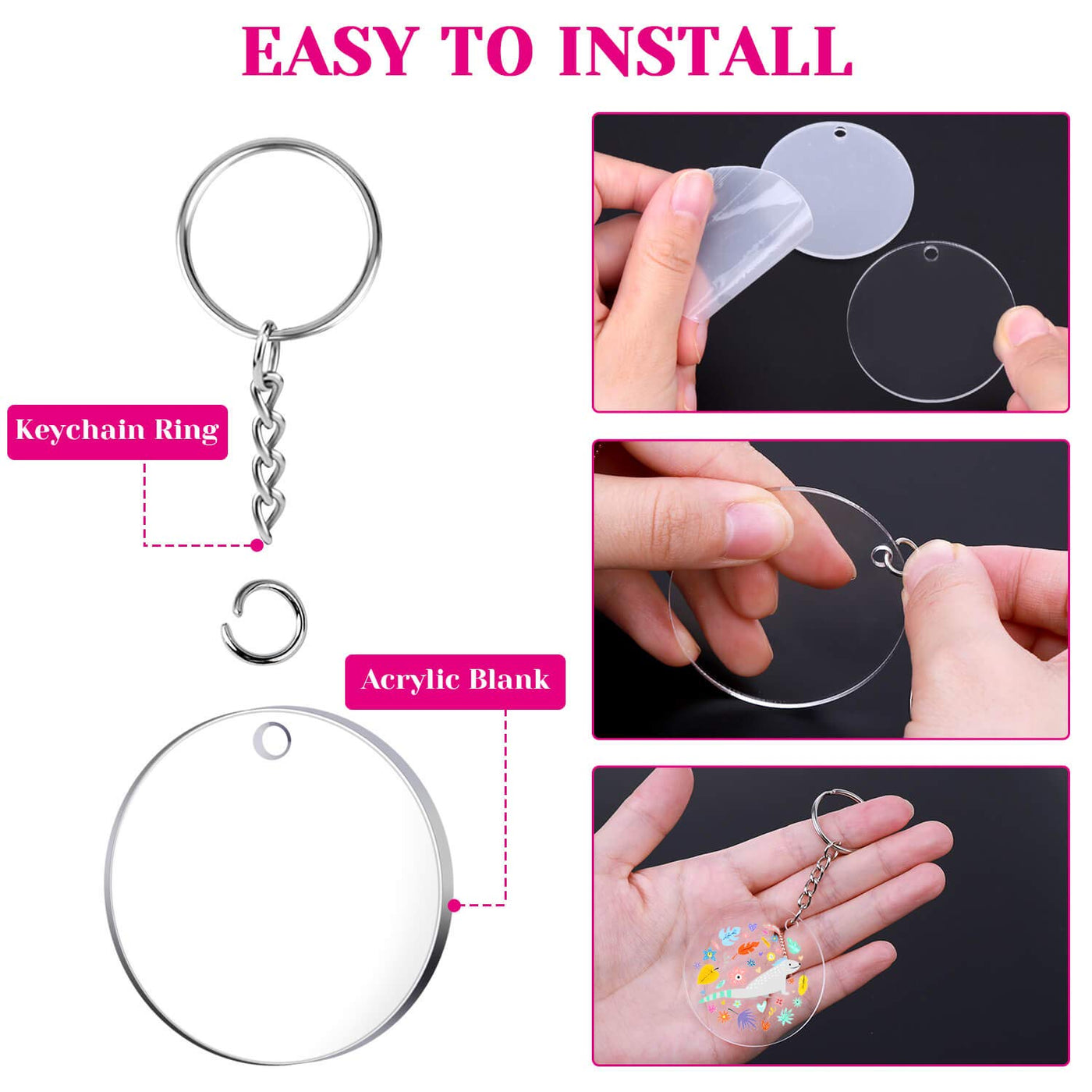 Audab Acrylic Keychain Blanks - 108 Clear Keychain Pieces for Vinyl Kit Including Acrylic Blanks, Rings for DIY Keychains, Crafting & Vinyl Projects Sale