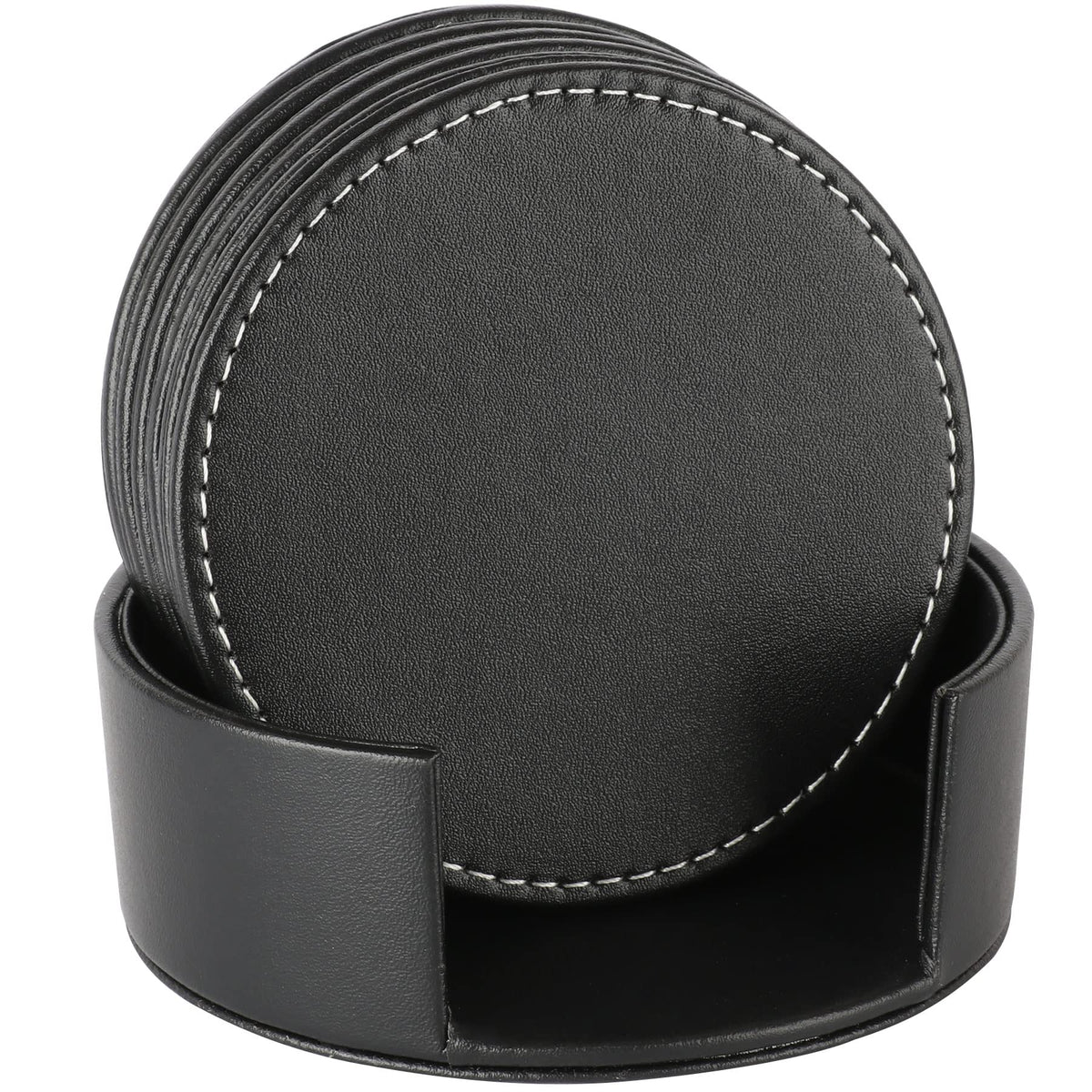 - SAFETY MATERIAL: Leather Coasters are made of high quality PU leather material, eco-friendly, no smell, lightweight, durable, non slip, water resistant.